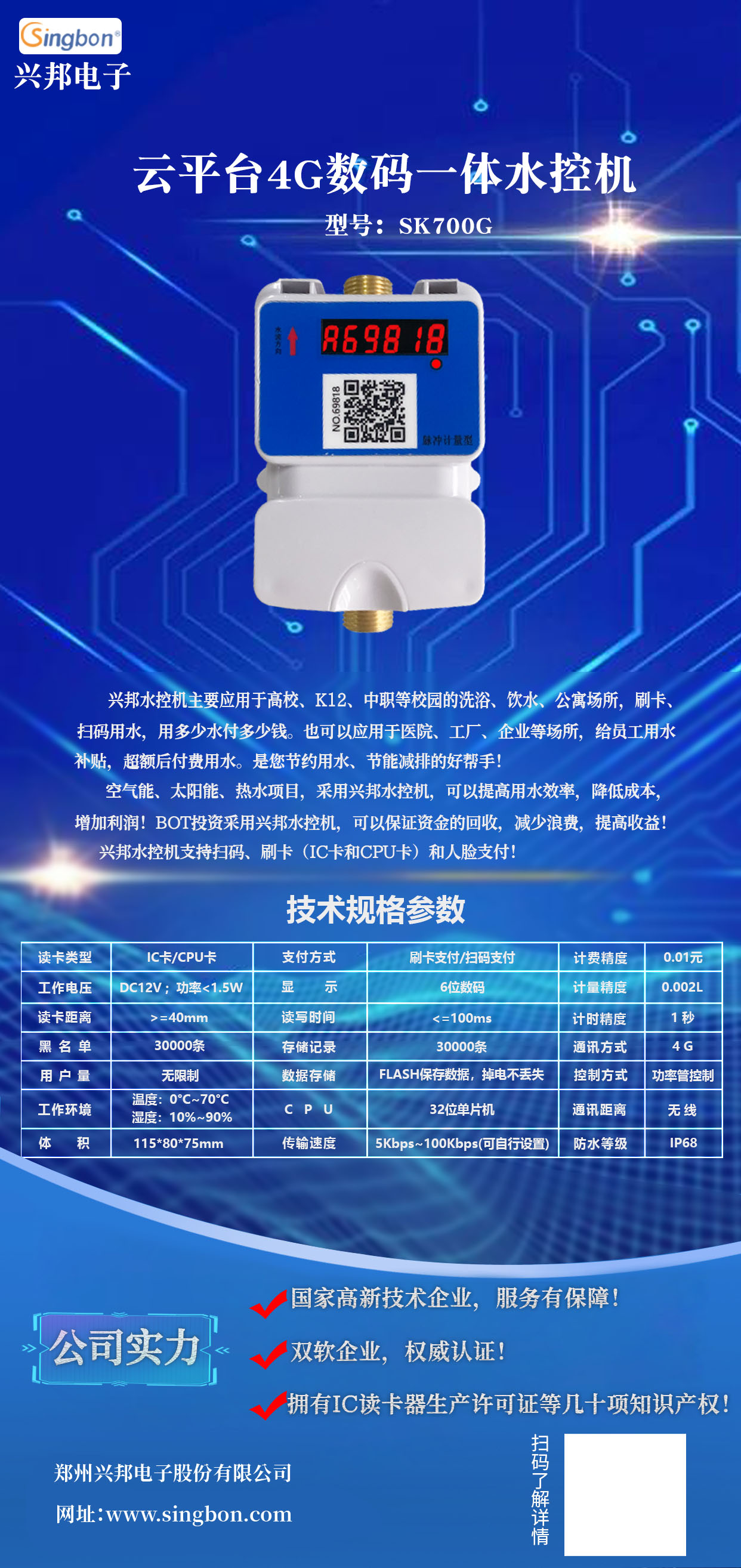 云平臺4G數(shù)碼一體水控機(jī)適用于學(xué)校、工廠、醫(yī)院等單位的公寓、宿舍洗浴等各種需要節(jié)水的場所。