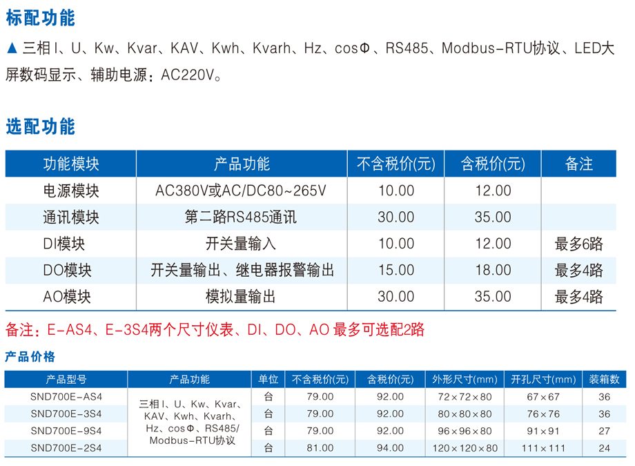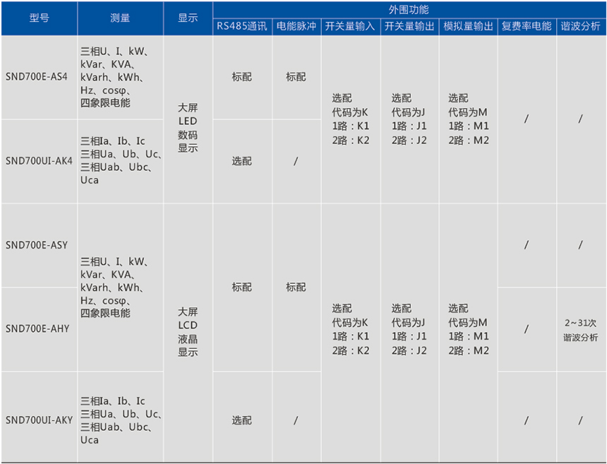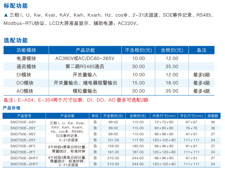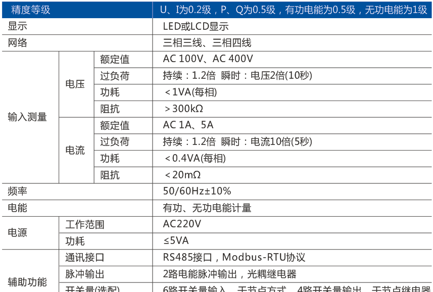 多功能電力儀表是針對電力系統(tǒng)、工礦企業(yè)、公共設(shè)施、智能大廈等電力監(jiān)控、智能監(jiān)控、計量考核的應(yīng)用場合設(shè)計的高精度、高可靠性、高性價比的智能儀表產(chǎn)品。該系列儀表采用高精度專用AD芯片和高可靠性的MCU設(shè)計,可以測量三相電網(wǎng)中的所有電量參數(shù)如三相電壓、三相電流、有功功率、無功功率、功率因數(shù)、電網(wǎng)頻率、雙向電能計量及THD等,具有標(biāo)準(zhǔn)電能脈沖和RS485通訊接口,可選多種擴展功能模塊(開關(guān)量輸入輸出、模擬量輸出、復(fù)費率電能統(tǒng)計、諧波分析等)。