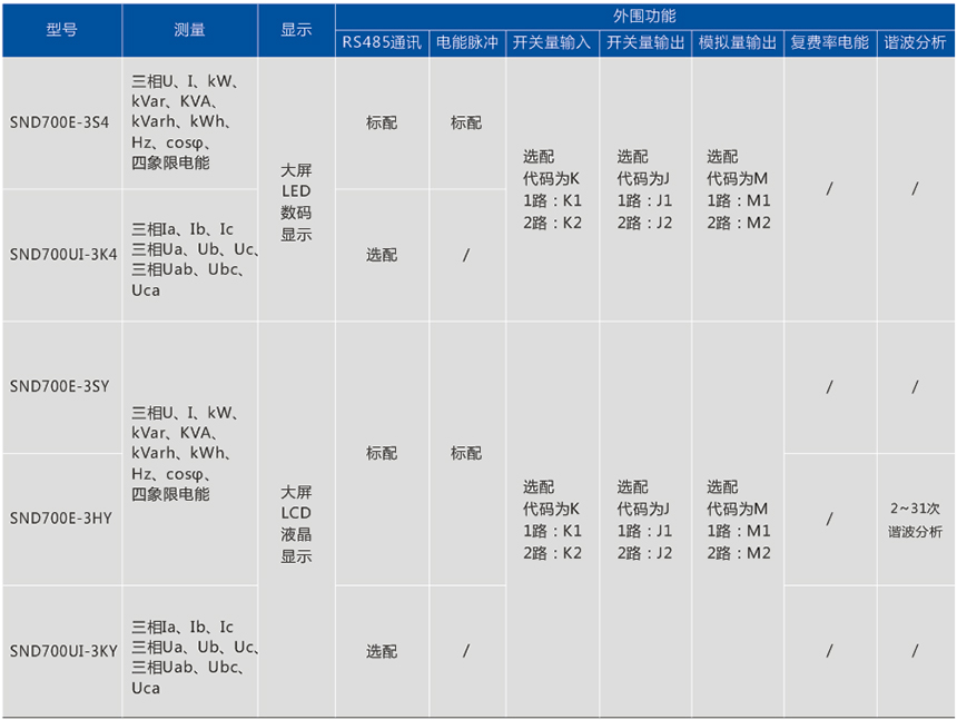 多功能電力儀表是針對電力系統(tǒng)、工礦企業(yè)、公共設(shè)施、智能大廈等電力監(jiān)控、智能監(jiān)控、計量考核的應(yīng)用場合設(shè)計的高精度、高可靠性、高性價比的智能儀表產(chǎn)品。該系列儀表采用高精度專用AD芯片和高可靠性的MCU設(shè)計,可以測量三相電網(wǎng)中的所有電量參數(shù)如三相電壓、三相電流、有功功率、無功功率、功率因數(shù)、電網(wǎng)頻率、雙向電能計量及THD等,具有標(biāo)準(zhǔn)電能脈沖和RS485通訊接口,可選多種擴(kuò)展功能模塊(開關(guān)量輸入輸出、模擬量輸出、復(fù)費(fèi)率電能統(tǒng)計、諧波分析等)。