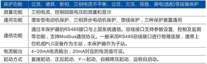 ▲欠流保護(hù):當(dāng)工作電流連續(xù)低于設(shè)定欠流門限時,動作時間≤10s。