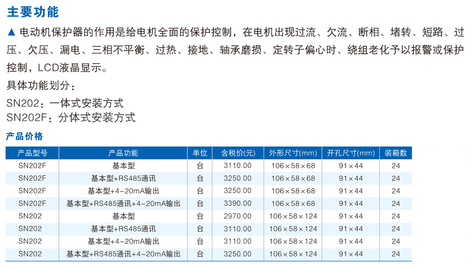 智能型微機(jī)監(jiān)控電機(jī)保護(hù)器適用于AC380V、AC660V低壓系統(tǒng),作為低壓異步電動機(jī)和增安型電動機(jī)的保護(hù)、監(jiān)測和控制的新一代智能化綜合裝置。除了先進(jìn)的電動機(jī)保護(hù)、監(jiān)控功能,還提供了設(shè)備運行和跳閘的記錄以及額定參數(shù)等重要信息,并且采用現(xiàn)場總線方式結(jié)構(gòu),為現(xiàn)代化的設(shè)備管理帶來很大的便利;廣泛用于 石油、化工、電力、冶金、煤炭、輕工、紡織等行業(yè)。 符合標(biāo)準(zhǔn):GB3836.3-2000、GB14048.4-2003、IEC255
