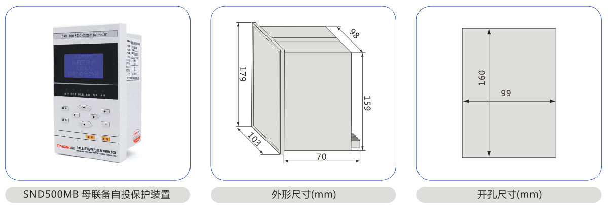 SND500系列數(shù)字式保護(hù)測(cè)控裝置適用于35kV及以下各電壓等級(jí)的間隔單元的保護(hù)測(cè)控,具備完善的保護(hù)、測(cè)量、控制、備用電源自投及通信監(jiān)視功能,為變電站、發(fā)電廠、高低壓配電及廠用電系統(tǒng)的保護(hù)與控制提供了完整的解決方案,可有力地保障高低壓電網(wǎng)及廠用電系統(tǒng)的安全穩(wěn)定運(yùn)行??梢院推渌Wo(hù)、自動(dòng)化設(shè)備一起,通過(guò)通信接口組成自動(dòng)化系統(tǒng)。全部裝置均可組屏集中安裝,也可就地安裝于高低壓開關(guān)柜。 具體功能劃分: ▲ SND500F 線路保護(hù)裝置 ▲ SND500T 變壓器保護(hù)裝置 ▲ SND500C 電容器保護(hù)裝置 ▲ SND500M 異步電動(dòng)機(jī)保護(hù)裝置 ▲ SND500FB 線路備自投保護(hù)裝置 ▲ SND500MB 母聯(lián)備自投保護(hù)裝置 ▲ SND500P 電壓互感器保護(hù)裝置