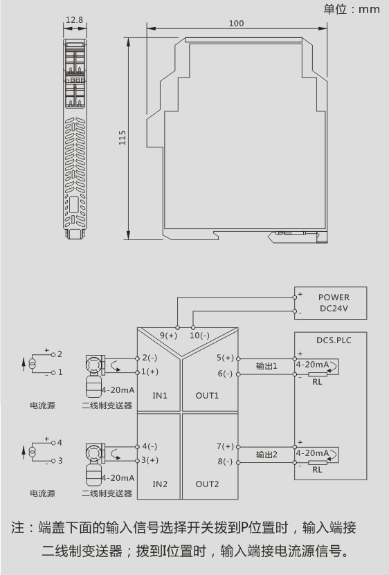 DC24V供電,將來自工業(yè)現(xiàn)場的電流或電壓信號經(jīng)隔離轉(zhuǎn)換成標(biāo)準(zhǔn)信號傳送到控制室、PLC、DCS等。
