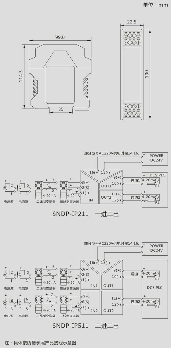 ■DC24V或AC220V供電,為現(xiàn)場的變送器提供隔離配電電源,同時實現(xiàn)電壓、電流、mV等各種信號的轉(zhuǎn)換。