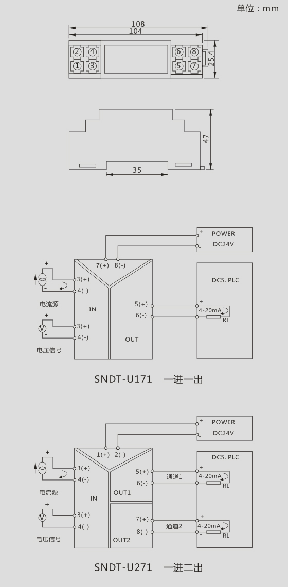 ■DC24V供電,為現(xiàn)場的變送器提供隔離配電電源,同時(shí)將變送器產(chǎn)生的電流信號(hào)從現(xiàn)場隔離傳送到控制室、PLC、DCS等。