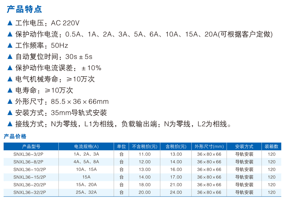 保護動作電流 :0.5A、1A、2A、3A、5A、6A、10A、15A、20A(可根據(jù)客戶定做)