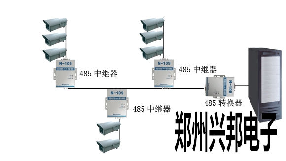 在某智能樓宇監(jiān)控項(xiàng)目當(dāng)中,每個(gè)樓層都有多個(gè)攝像頭對各個(gè)地點(diǎn)進(jìn)行監(jiān)控,利用485總線對攝像頭進(jìn)行控制,施工單位在施工過程當(dāng)中發(fā)現(xiàn),如果按照原先的485總線型的拓?fù)浣Y(jié)構(gòu)的話,485總線主干線必須要經(jīng)過每一個(gè)攝像頭,這樣將導(dǎo)致485線的距離非常的長,而且在后期的維護(hù)當(dāng)中,由于所有的攝像頭都是經(jīng)過一個(gè)485總線,如果在485總線上有一個(gè)攝像頭出現(xiàn)問題,有可能導(dǎo)致整個(gè)系統(tǒng)不能運(yùn)行。他們使用485中繼器將原先的485總線型的拓?fù)浣Y(jié)構(gòu)改造成樹型的拓?fù)浣Y(jié)構(gòu),大大簡化了施工,并且極其方便后期的維護(hù)。極大的節(jié)省了費(fèi)用。