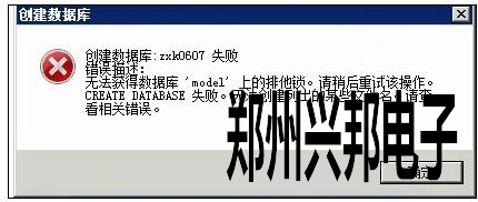 創(chuàng)建數(shù)據(jù)庫失敗,提示無法獲得數(shù)據(jù)庫‘model’上的排他鎖,如下圖所示: