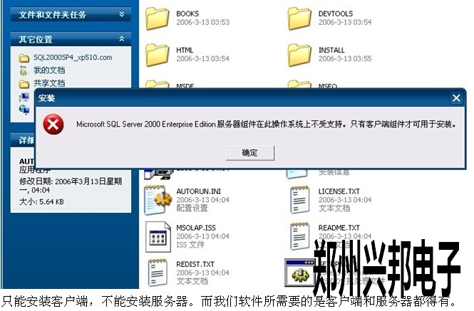 只能安裝客戶端,不能安裝服務(wù)器。而我們軟件所需要的是客戶端和服務(wù)器都得有。