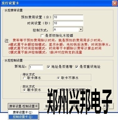 4、最后點擊“費率設(shè)置/控制設(shè)置卡”按鈕選擇“控制設(shè)置卡”點擊確定完成就可
