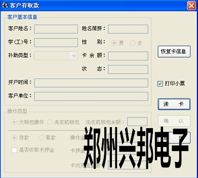 恢復(fù)卡信息是在存錢時卡庫在寫值時出錯,造成一卡或庫兩者有一者未寫上時,可時使用此項(xiàng)恢復(fù)到存取錢前的卡值