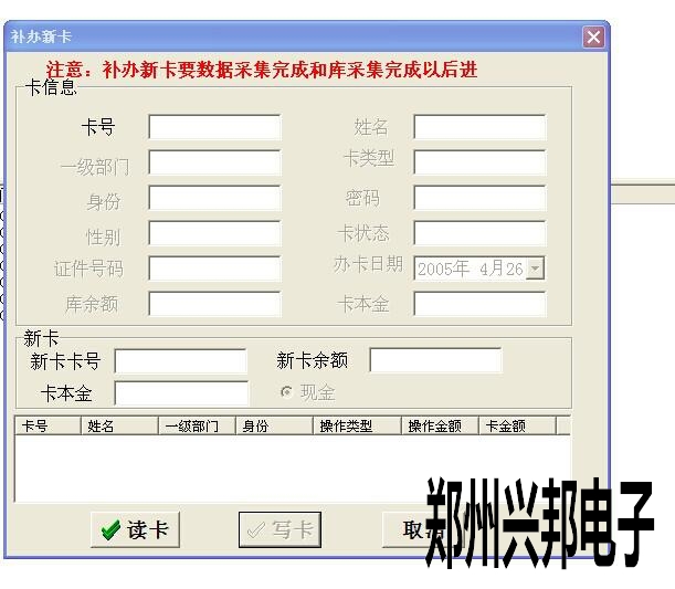 2、把新卡放在IC讀卡器上,然后在軟件里有個卡管理--補(bǔ)辦新卡,