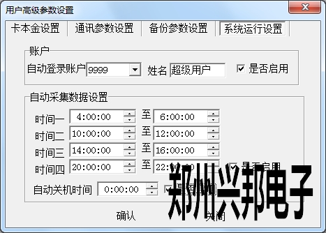在使用興邦一卡通平臺進(jìn)行用戶高級參數(shù)設(shè)置時包含卡本金設(shè)置、通訊參數(shù)設(shè)置、備份參數(shù)設(shè)置和系統(tǒng)運行設(shè)置四個參數(shù)設(shè)置。