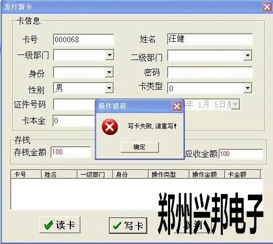 問題描述:客戶用的485食堂售飯機(jī)軟件,軟件可以正常打開,正常讀卡,客戶卡也能正常使用,發(fā)行新卡,存款時(shí)讀卡的時(shí)候是正常的,但是在寫卡的時(shí)候一直提示寫卡失敗,請重寫!