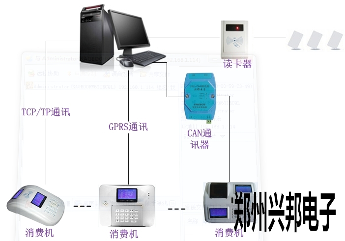 IC卡中文液晶消費(fèi)機(jī)的網(wǎng)絡(luò)布線圖