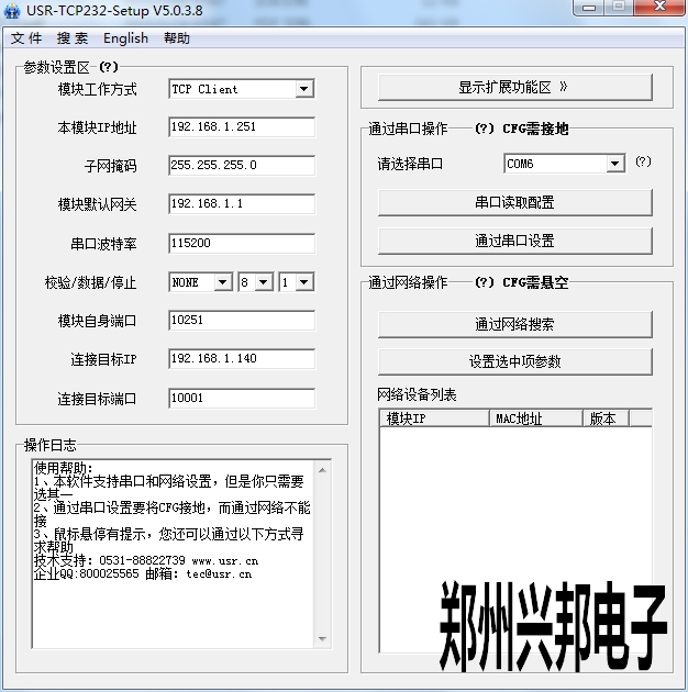 5、模塊自身端口取所填本地ip地址的最后一空的數(shù)字,比如所填IP為192.168.1.251那么該端口就是10251