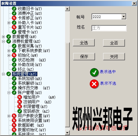 售飯水控系統(tǒng)軟件中關(guān)于操作人員權(quán)限分配的說(shuō)明