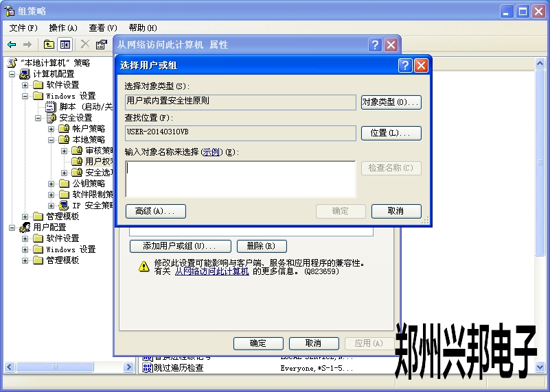 在“拒絕從網(wǎng)絡(luò)訪問(wèn)”右擊“屬性”把里面的所有賬戶刪除