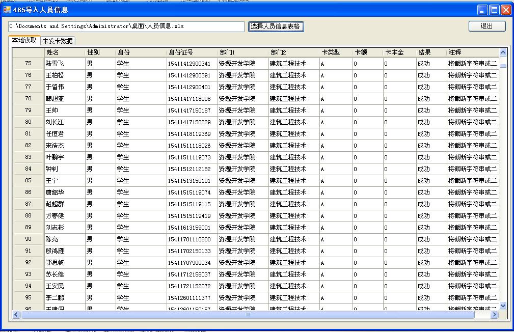 2、選擇人員信息表格,把制好的人員信息導入到軟件里。