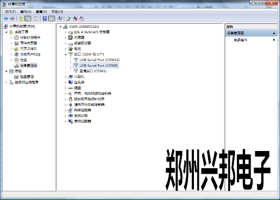 1、單擊計(jì)算機(jī)—單擊右鍵—管理—設(shè)備管理—端口。找到所用usb線(xiàn)端口。如下圖: