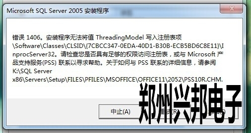 客戶使用的我們的互聯網一卡通食堂售飯機,在安裝數據庫SQL2005時出現SQL server 2005 錯誤  1406. 未能將值 CLSIDThreadingModel寫入注冊表\Software\Classes\PROTOCOLS\Handler\ms-help. 怎么辦
