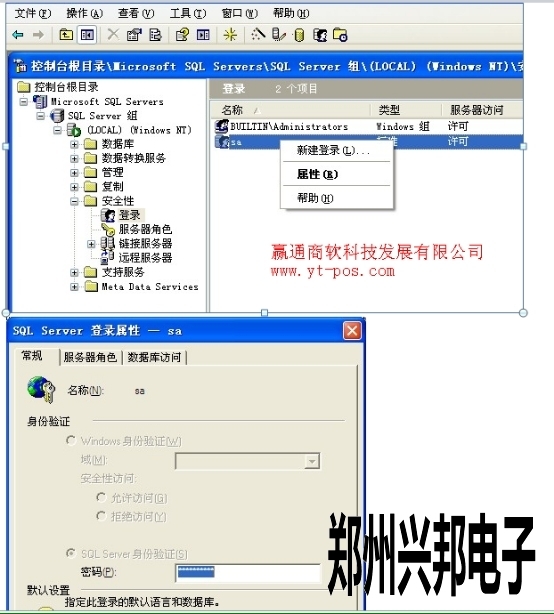 局域網(wǎng)一卡通食堂售飯機(jī)需要安裝數(shù)據(jù)庫2000,裝好數(shù)據(jù)庫時間長了,忘記了sa的登錄密碼,然后重新恢復(fù)備份的時候不知道密碼,下面告訴你怎么修改sa帳戶的密碼: