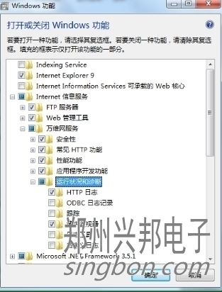 進(jìn)入Windows功能窗口,然后看到internet信息服務(wù)選項(xiàng),然后按照?qǐng)D中設(shè)置即可,Ps:打√的選項(xiàng)下面為全選,方圈的下面按照?qǐng)D中打√的選擇即可。