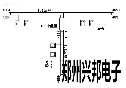 利用485中繼器解決485分叉問(wèn)題,如圖所示: