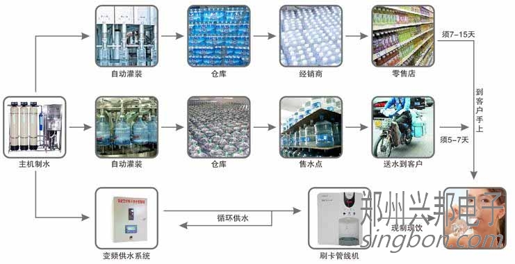 直飲水與桶裝水、瓶裝水生產(chǎn)工藝流程對(duì)比圖